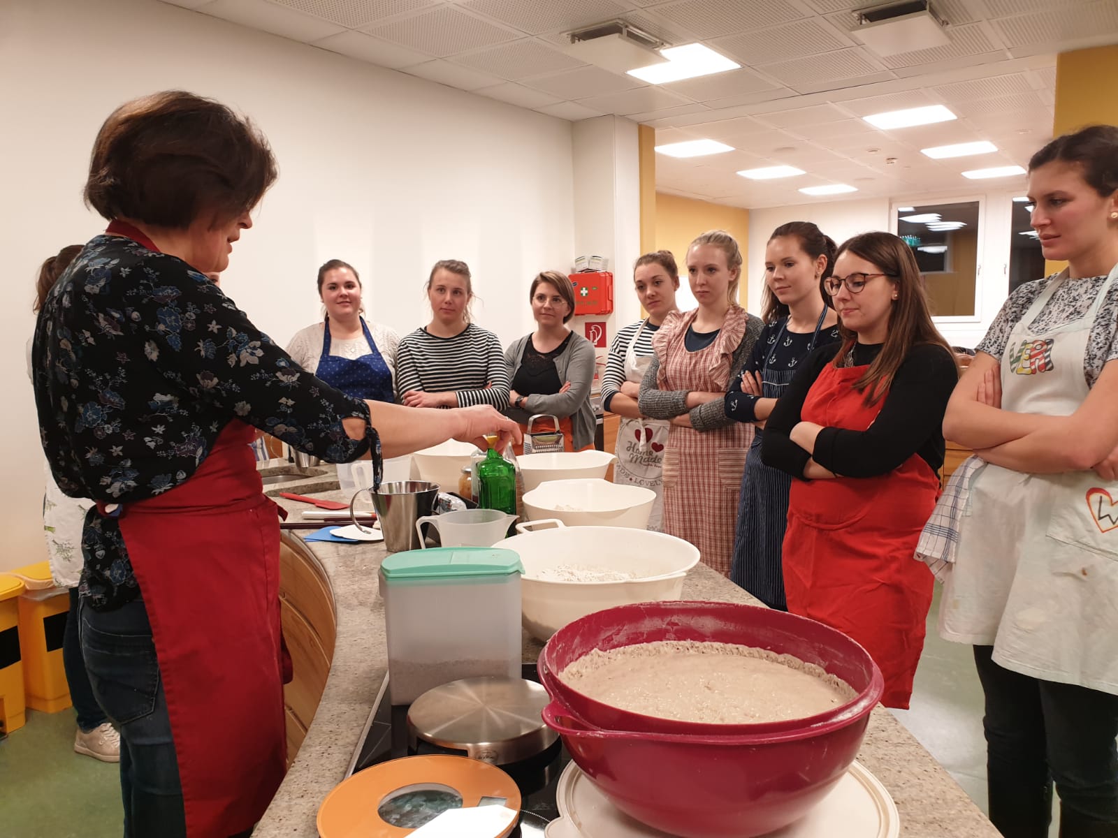 Im Rahmen des Bildungsprogrammes veranstaltete der Bezirksvorstand einen Brotbackkurs in der Landwirtschaftskammer für alle Mitglieder des Bezirks. Das Interesse war groß, und so waren schließlich 17 motivierte LJ-Mitglieder aus verschiedensten Ortsgruppen des Bezirks bereit zum Brot backen. Aber nicht nur das Brotbacken selbst war Bestandteil des Kurses - auch die Getreidelehre zu Beginn sowie alle Infos rund um Teig & Co. gehörten dazu. So wurden fleißig Hausbrot, Salzstangerl, Kartoffelbrot und vieles mehr gebacken. Den Abend ließen die Teilnehmer schließlich bei einer gemeinsamen Jause ausklingen. Es war für alle ein sehr informativer und lustiger Abend, und die LJ-Mitglieder freuen sich jetzt schon auf den nächsten Kochkurs!