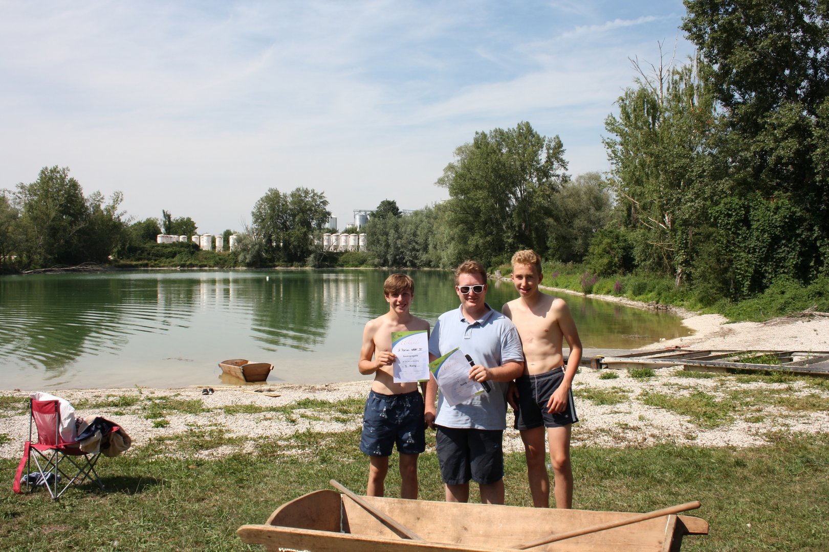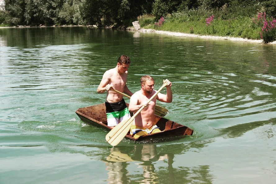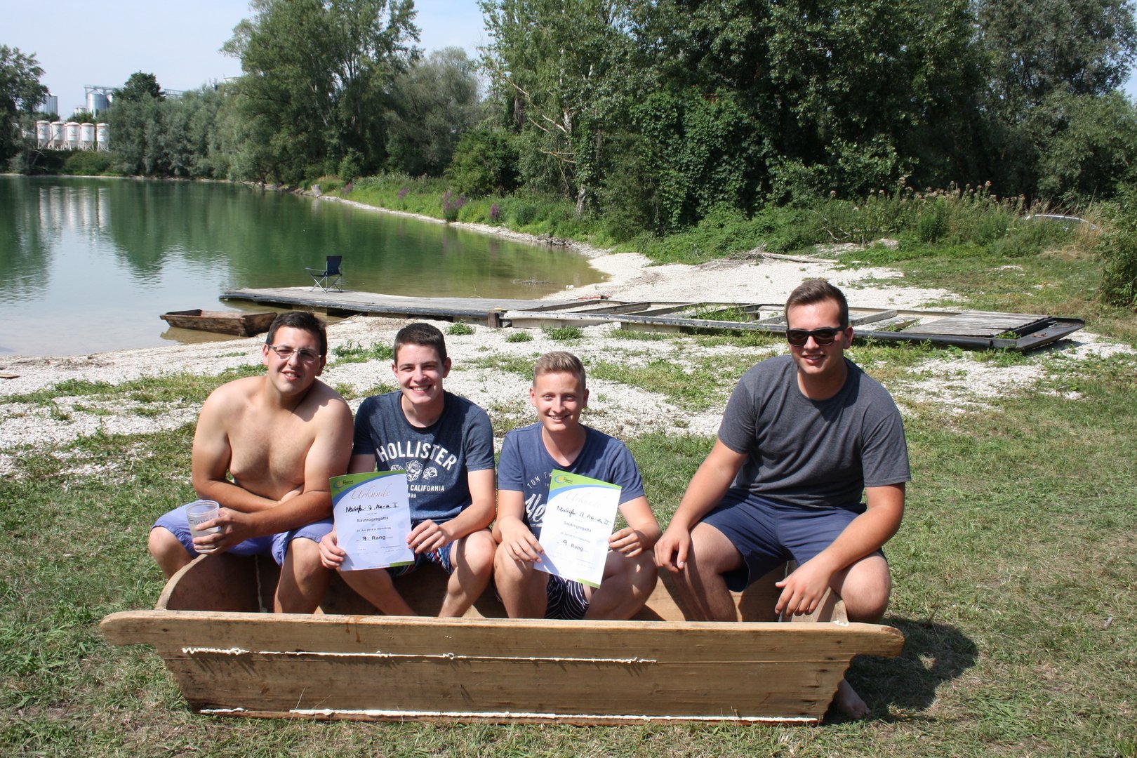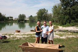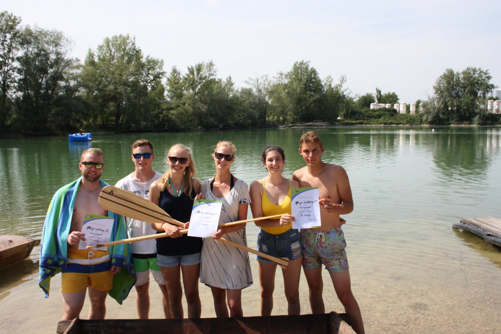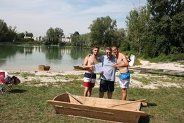 Die Teams sollten mit dem Sautrog ins Wasser rennen, hineinspringen bis zur Boje, rundherum, wieder zurück paddeln und den Sautrog ins Trockene ziehen. Am Ende siegte das Team der Ortsgruppe Oftering-Wilhering, dicht gefolgt von der Ortgruppe St. Florian-Niederneukirchen auf dem 2. Platz.